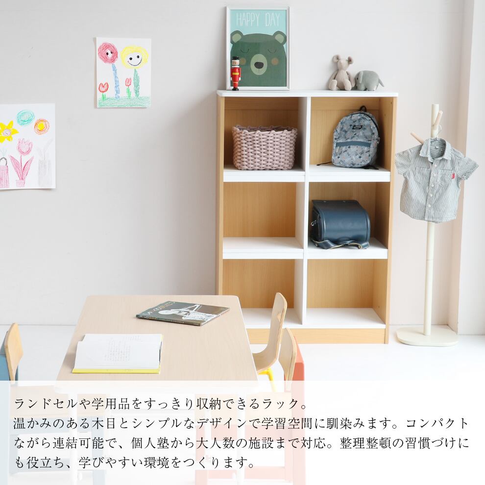 ランドセルラック 85.5cm幅 ナチュラル 学用品ラック ランドセル収納ラック キッズ収納ラック コンパクトランドセルラック おすすめ おしゃれ 北欧 モダン スタイリッシュ 学習塾 スクールバッグラック 収納棚 収納ラック ランドセル収納ボックス 転倒防止 連結可能 複数連結可能 増設可能 学習道具収納 学習用具収納