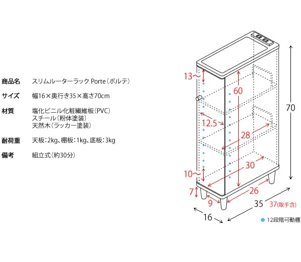 ■商品サイズ(約):幅16cm、奥行き35cm、高さ70cm