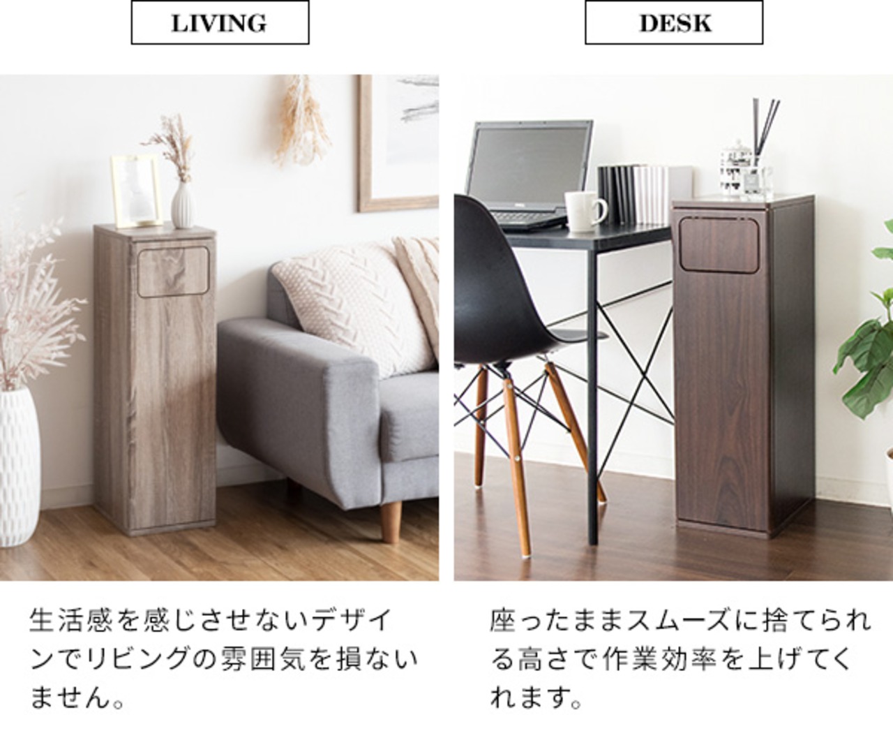 幅25cmとスリムタイプなので省スペースで設置できるのでキッチンやカウンターの隙間、デスク横やソファ横、寝室など場所を選ばず置くことができます。