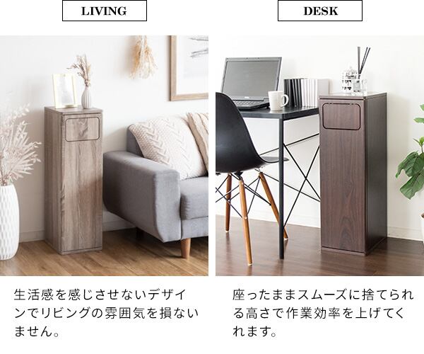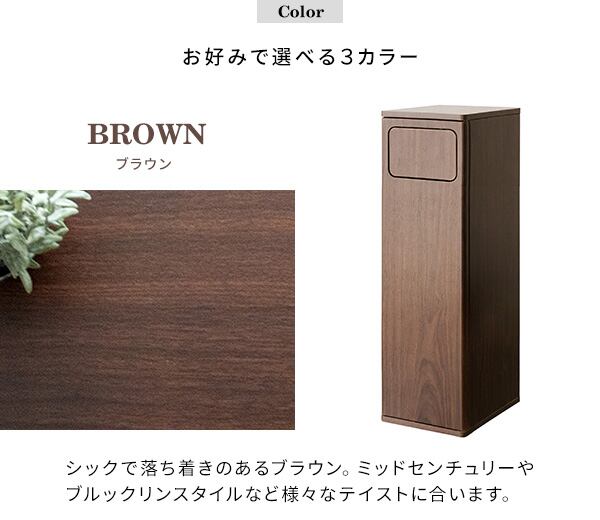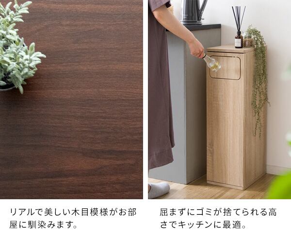 臭いが漏れにくく押すだけで簡単に捨てられるプッシュ扉式の木目調プッシュ式ダストボックスです。