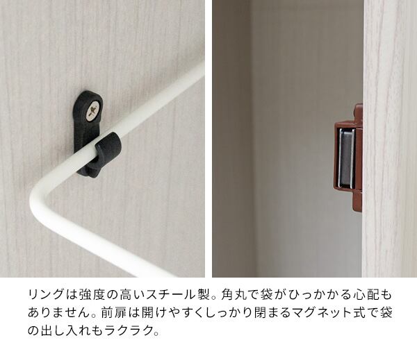 ゴミ袋の着脱も簡単な前扉があり、利便性もバツグンでゴミ捨てが簡単です。
