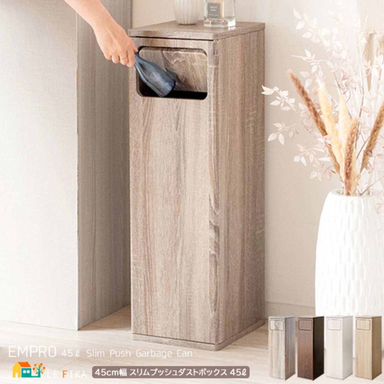 ゴミ箱 プッシュ式 プッシュ扉 ダストボックス おすすめ おしゃれ 北欧 ブラウン ナチュラル ホワイト グレージュ 木目調 リビング 寝室 キッチン ごみばこ ゴミ袋が見えにくい 省スペース スリム コンパクト 大容量 45リットル ゴミが見えにくい プッシュタイプ くずかご おむつペール