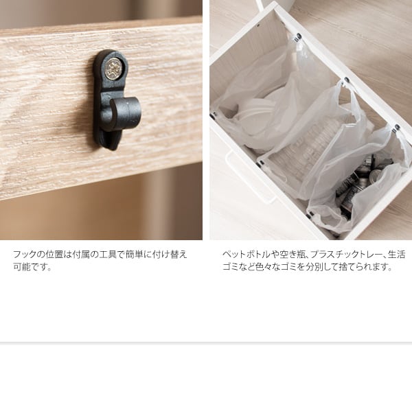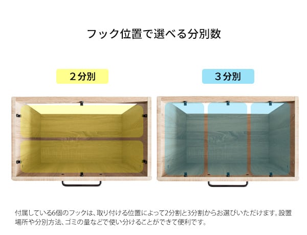 フック取り付け位置を変えることで2〜3分別でお選びいただけます。