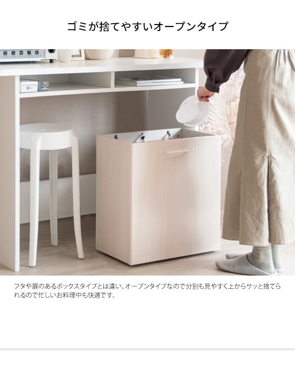 分別フック式ゴミ箱 50cm幅 ブラウン ナチュラル ホワイト 茶色 白 ごみばこ ダストボックス オープンタイプ 引っ掛け 3連引っ掛けフック式 2連フック式 ゴミ箱 おすすめ おしゃれ 北欧 モダン スタイリッシュ キャスター付き 幅50cm 全奥行き33cm 高さ55.5cm フック式