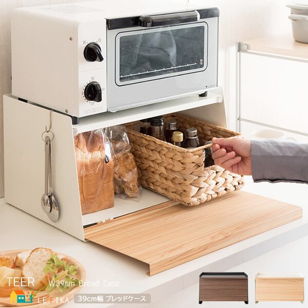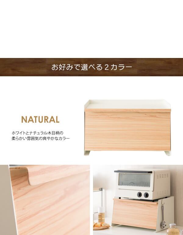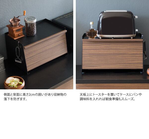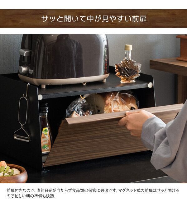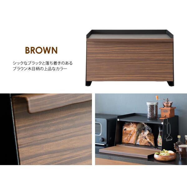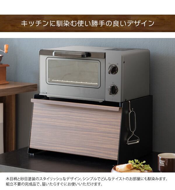 ブレッドケース キッチン収納 ブラウン ナチュラル 茶色 調味料収納 食品収納 おすすめ おしゃれ 北欧 完成品 前開き トースター台 スチール製 床傷防止 木目調 食べ物収納 収納 収納ボックス 調味料収納箱 台所収納