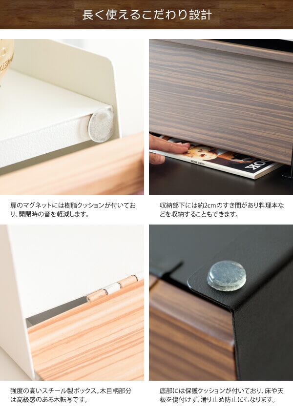 前扉で中身を隠せて、必要な時はサッと開いて中が見やすく便利です。