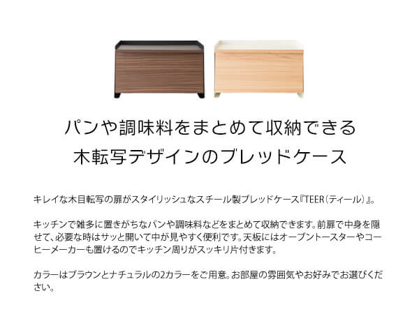 キレイな木目転写の扉がスタイリッシュなスチール製のブレッドケースです。