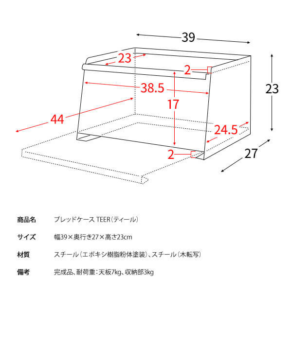 ■耐荷重(約):天板7kg、収納部3kg
