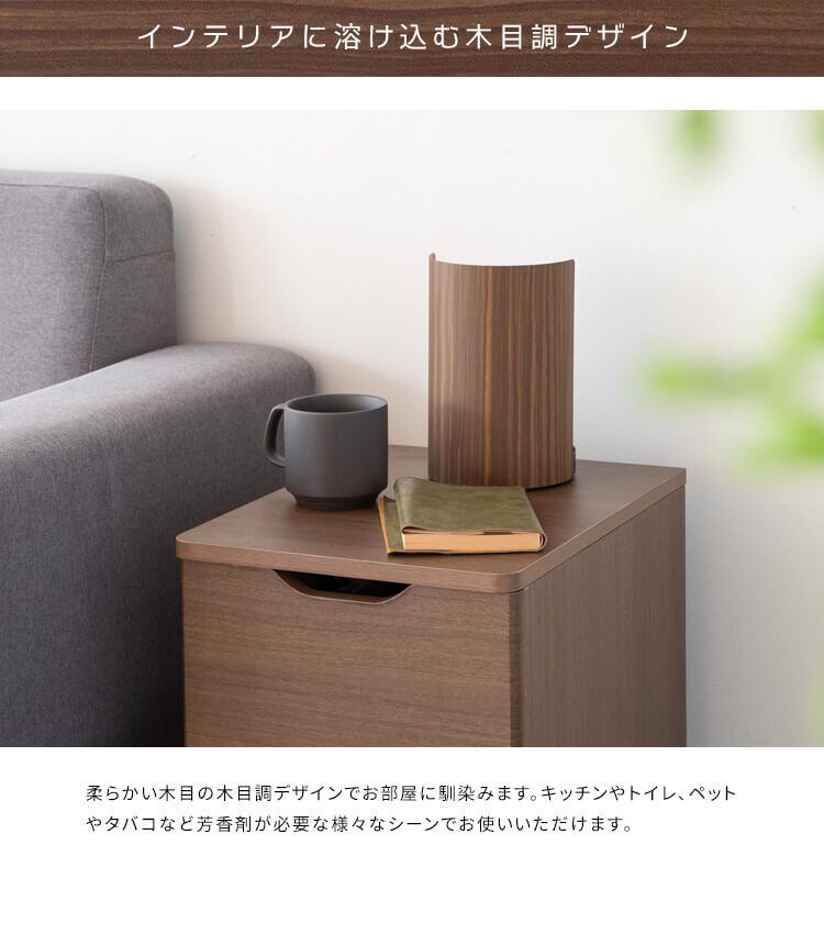 木目柄のデザインがお部屋の雰囲気を壊さず、インテリアに溶け込みます。