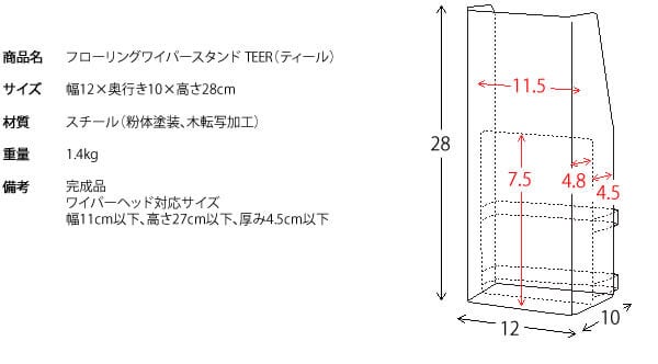 フロアワイパースタンド 12cm幅 ブラウン ナチュラル フローリングワイパースタンド そうじ 掃除道具収納 おすすめ おしゃれ 北欧 モダン スタイリッシュ 木目調 スチール製 収納ケース 幅12cm 奥行き10cm 高さ28cm ワイパースタンド ハンディワイパースタンド 収納スタンド