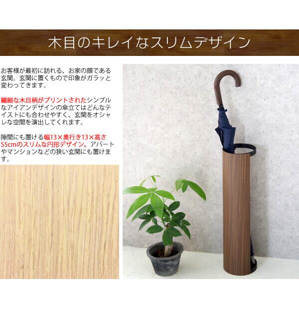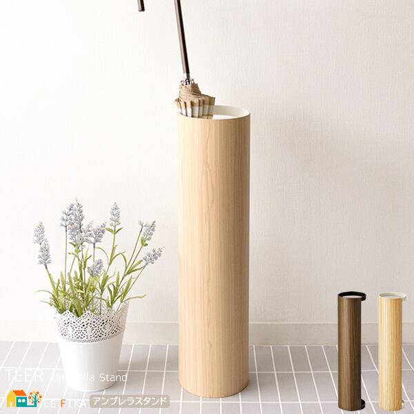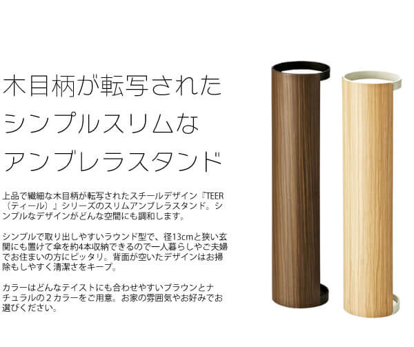 傘立て 13cm幅 ナチュラル ブラウン アンブレラスタンド 傘スタンド 傘ラック おすすめ おしゃれ 北欧 モダン スタイリッシュ 木目調 スチール製 雨具収納 雨傘収納 ラウンド型 円型 丸形 円形 丸型 幅13cm 奥行き13cm 高さ55cm ラウンド型傘立 スリム コンパクト 省スペース