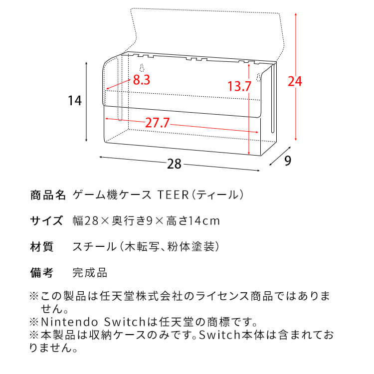ゲーム機ケース Switch収納 28cm幅 ホワイト ナチュラル ブラウン 白 茶色 おすすめ おしゃれ 北欧 モダン スタイリッシュ 木目調 スチール製 壁掛け可能 コンパクト シンプル 幅28cm 奥行き9cm 高さ14cm Switch用収納ケース スイッチケース 収納ボックス ゲーム機収納