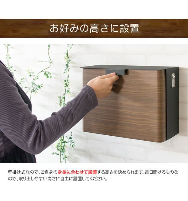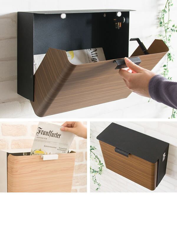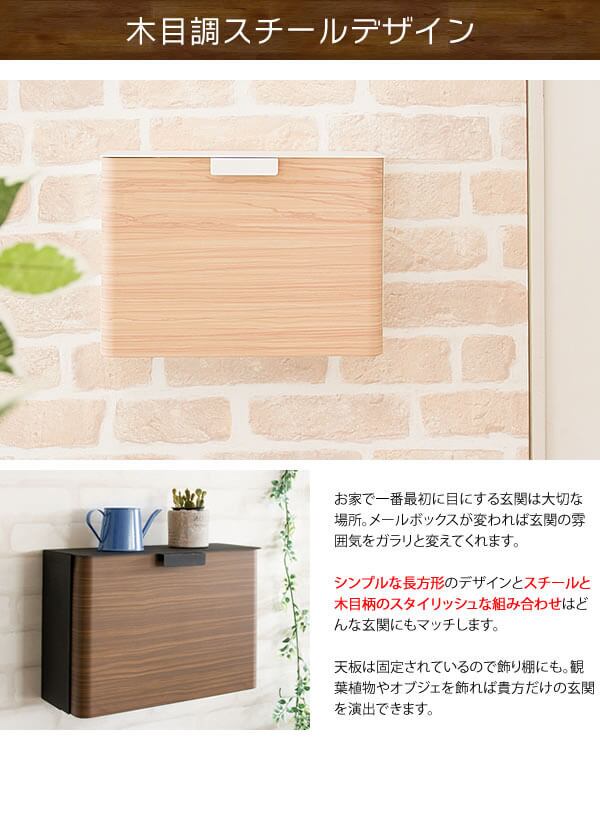 郵便受け 郵便ポスト 壁掛け式 壁付け式 鍵付きポスト 鍵付き郵便受け おすすめ おしゃれ 木目調 スチール製 ナチュラル ブラウン 壁面取付 手前開き 新聞受け 壁掛けポスト 壁付けポスト