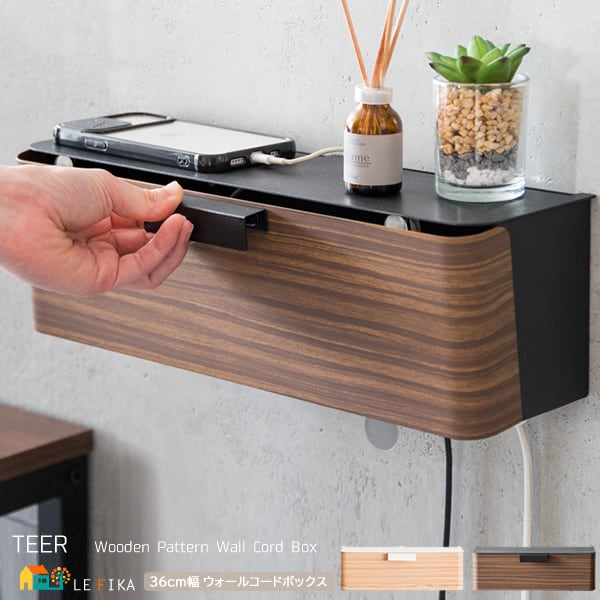 壁面コードボックス 36cm幅 ナチュラル ブラウン ウォールコードボックス 配線収納ケース 壁掛け ケーブルボックス タップボックス おすすめ おしゃれ 北欧 モダン スタイリッシュ 木目調 スチール製 幅36cm 奥行き12cm 高さ11.5cm コードボックス ケーブル収納 配線収納
