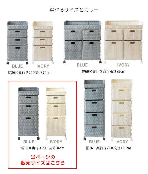 ランドリーチェスト 36cm幅 アイボリー ブルー 人工ラタン キャスター付き サニタリーチェスト スリム コンパクト 省スペース 引き出し収納 オープン収納 洗面所収納 脱衣所収納 タオル収納 幅36cm 奥行29cm 高さ94cm おすすめ おしゃれ 北欧 モダン スタイリッシュ 収納