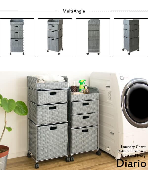 ランドリーチェスト キャスター付き 人工ラタン 収納ラック 収納棚 洗面所収納 洗濯機横収納 キッチン収納 おすすめ おしゃれ 北欧 収納チェスト デスクサイド収納 タオル収納 洗濯用品収納 ランドリー横ラック 収納ワゴン サニタリーワゴン ブルー アイボリー