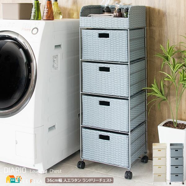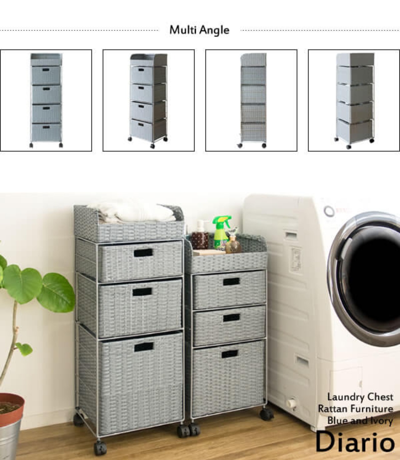 ランドリーチェスト キャスター付き 人工ラタン 収納ラック 収納棚 洗面所収納 洗濯機横収納 キッチン収納 おすすめ おしゃれ 北欧 収納チェスト デスクサイド収納 タオル収納 洗濯用品収納 ランドリー横ラック 収納ワゴン サニタリーワゴン ブルー アイボリー