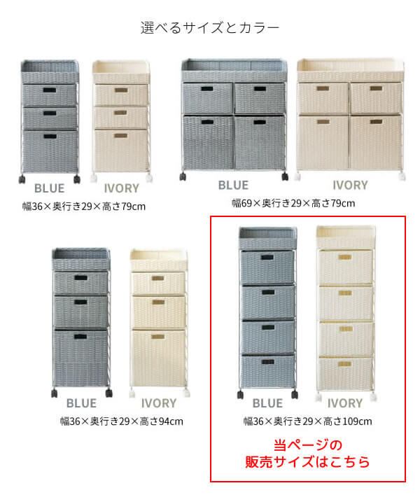 ランドリーチェスト 36cm幅 アイボリー ブルー 人工ラタン キャスター付き サニタリーチェスト スリム コンパクト 省スペース 引き出し収納 オープン収納 洗面所収納 脱衣所収納 タオル収納 幅36cm 奥行29cm 高さ109cm おすすめ おしゃれ 北欧 モダン スタイリッシュ 収納