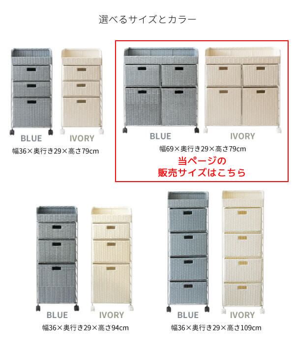 ランドリーチェスト 69cm幅 アイボリー ブルー 人工ラタン キャスター付き サニタリーチェスト スリム コンパクト 省スペース 引き出し収納 オープン収納 洗面所収納 脱衣所収納 タオル収納 幅69cm 奥行29cm 高さ79cm おすすめ おしゃれ 北欧 モダン スタイリッシュ 収納