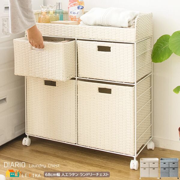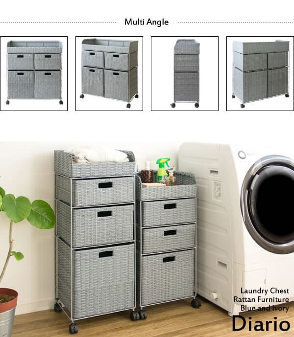 ランドリーチェスト キャスター付き 人工ラタン 収納ラック 収納棚 洗面所収納 洗濯機横収納 キッチン収納 おすすめ おしゃれ 北欧 収納チェスト デスクサイド収納 タオル収納 洗濯用品収納 ランドリー横ラック 収納ワゴン サニタリーワゴン ブルー アイボリー