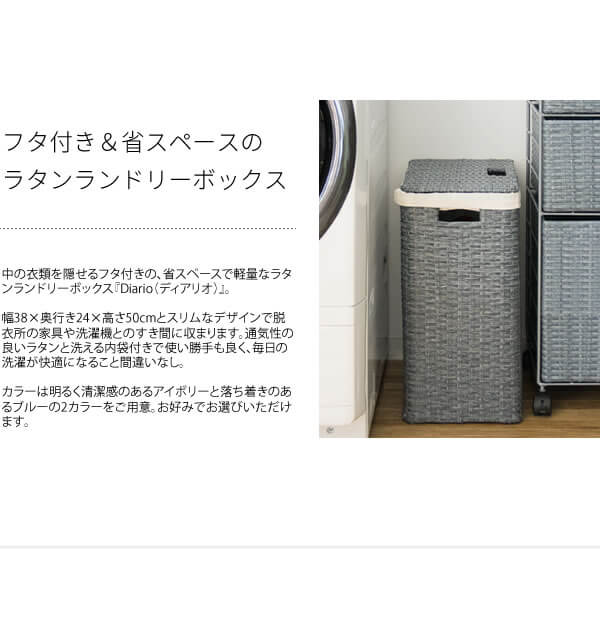 ランドリーボックス 38cm幅 アイボリー ブルー 人工ラタン フタ付き 内袋付き サニタリーボックス 洗濯物収納 洗濯物ボックス 幅38cm 奥行24cm 高さ50cm おすすめ おしゃれ 北欧 モダン スタイリッシュ コンパクト 省スペース スリム 蓋付きランドリーボックス 春 夏 秋 冬