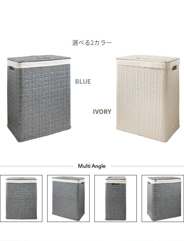 ランドリーボックス 蓋つきランドリーバスケット おすすめ おしゃれ 北欧 人工ラタン ブルー アイボリー 洗面所収納 サニタリー収納 洗い物入れ 洗い物ボックス 洗い物バスケット ランドリー収納 隙間収納 汚れ物入れ 洗濯物ボックス 洗濯物バスケット