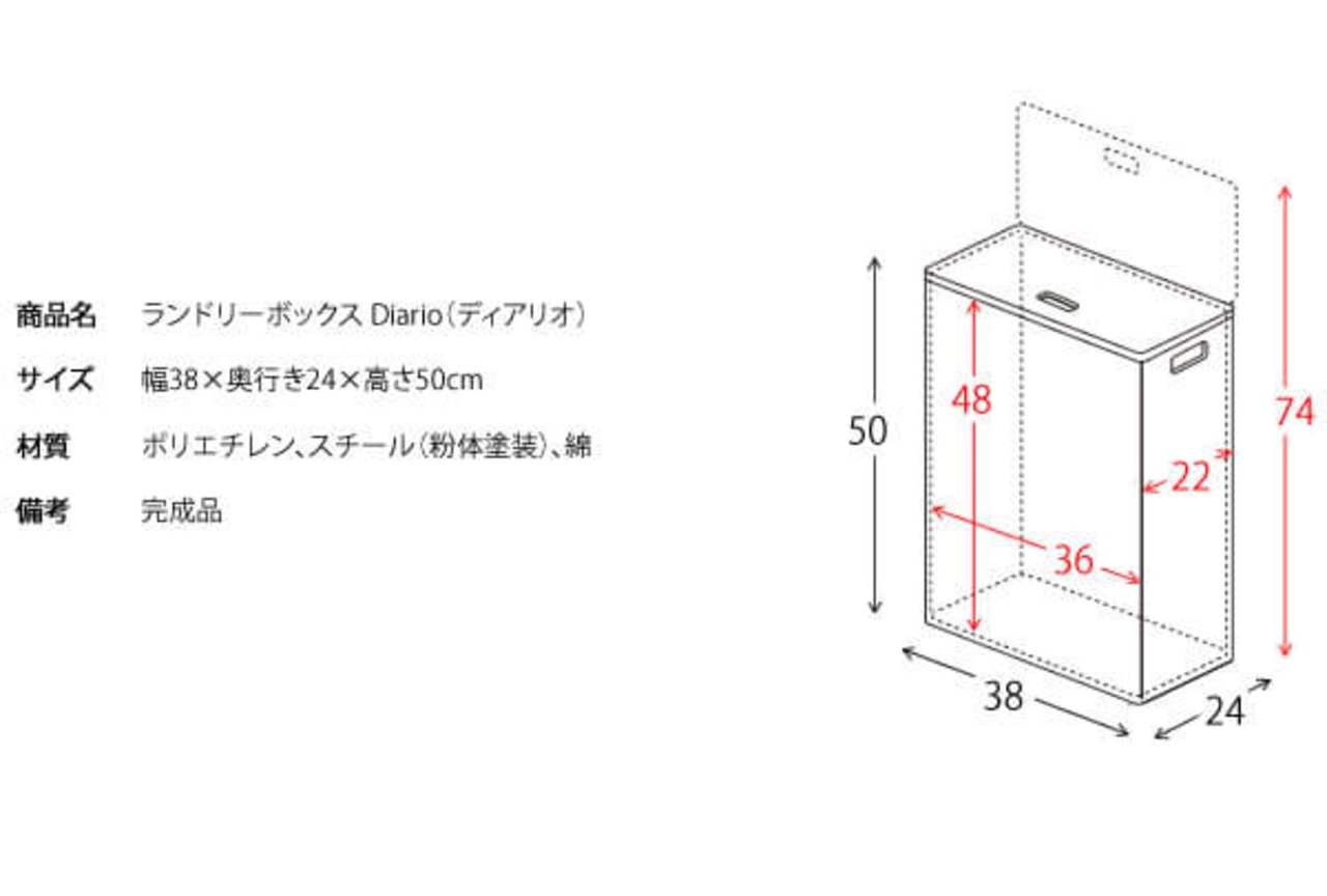 幅38cm、奥行き24cm、高さ50cmとスリムなサイズ感で脱衣所の家具や洗濯機とのすき間に設置可能です。