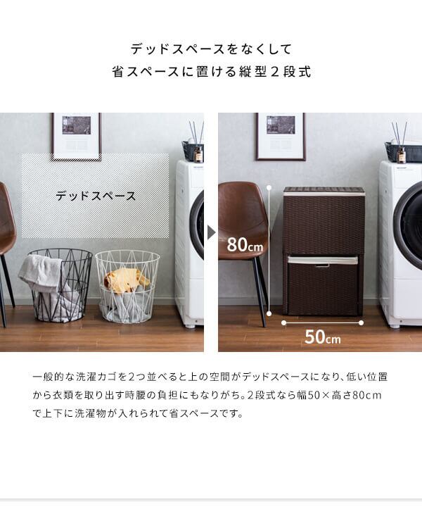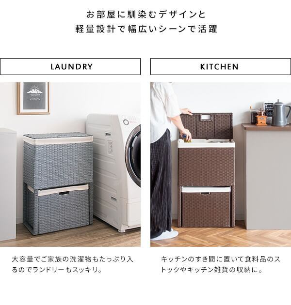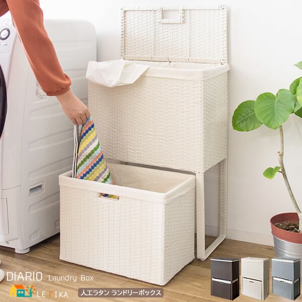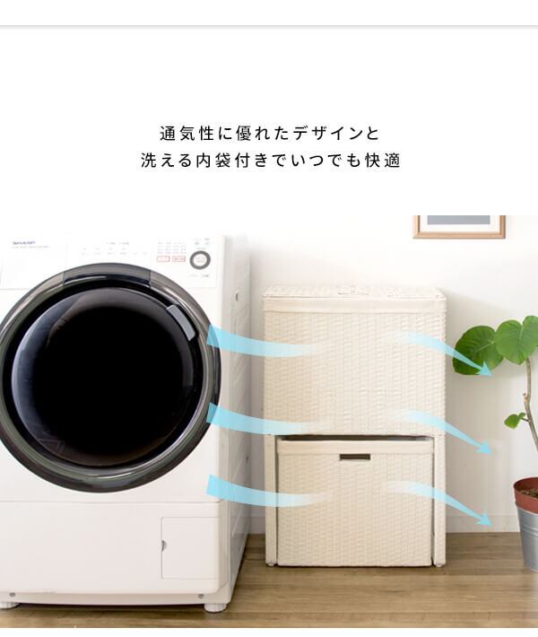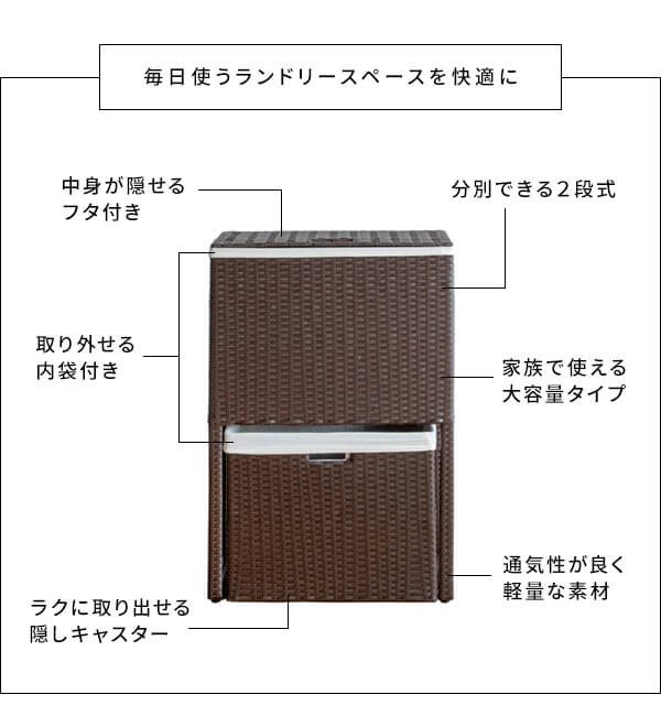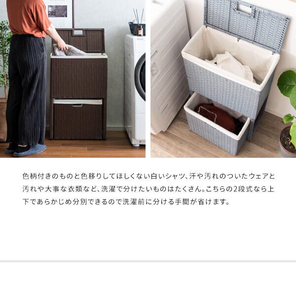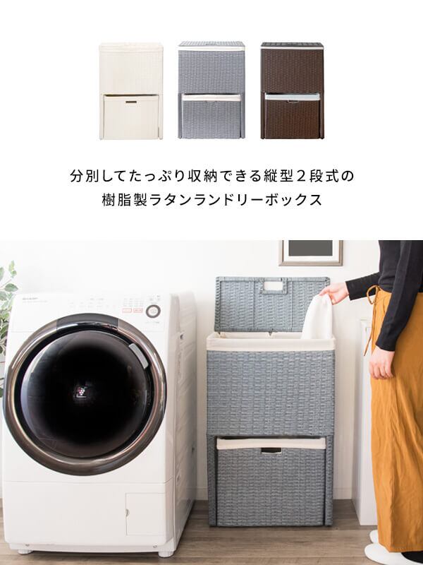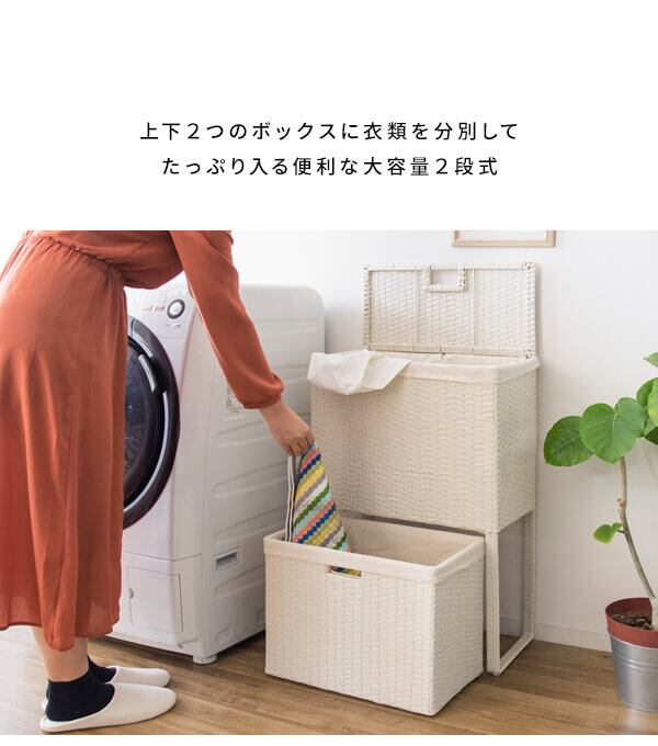 衣類がたっぷり置けて取り出しやすく、分別もできる縦型2段式の人工ラタンを使用したランドリーボックスです。