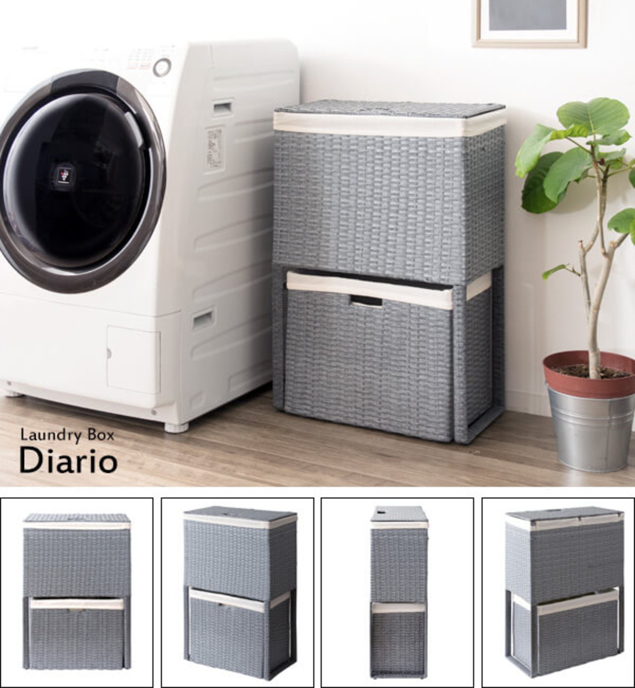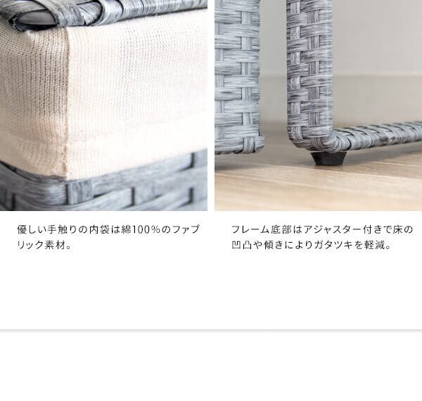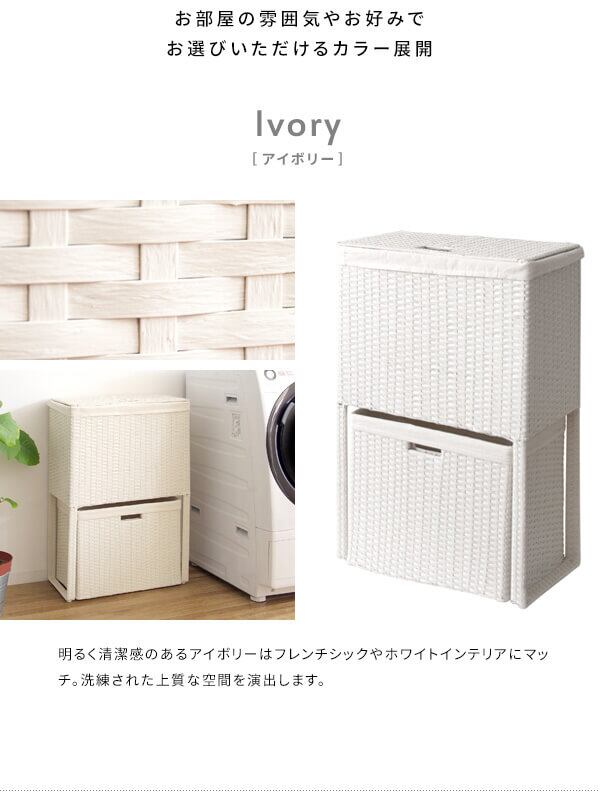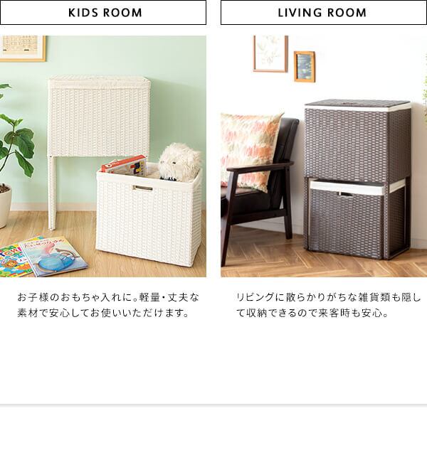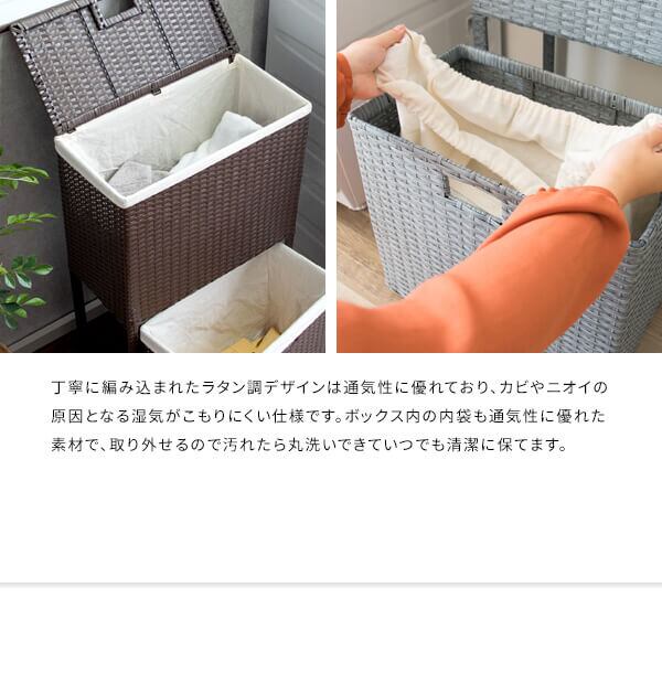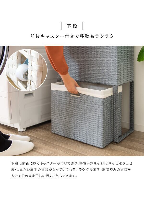 衣類がたっぷり置けて取り出しやすく、分別もできる縦型2段式の人工ラタンを使用したランドリーボックスです。