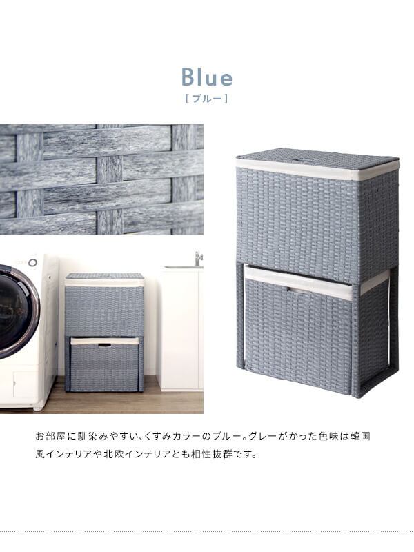 ランドリーボックス 縦型2段 ランドリーバスケット フタ付き おすすめ おしゃれ 北欧 人工ラタン ブルー アイボリー ダークブラウン 洗面所収納 サニタリー収納 洗い物入れ 洗い物ボックス 洗い物バスケット ランドリー収納 隙間収納 汚れ物入れ 洗濯物ボックス 洗濯物バスケット