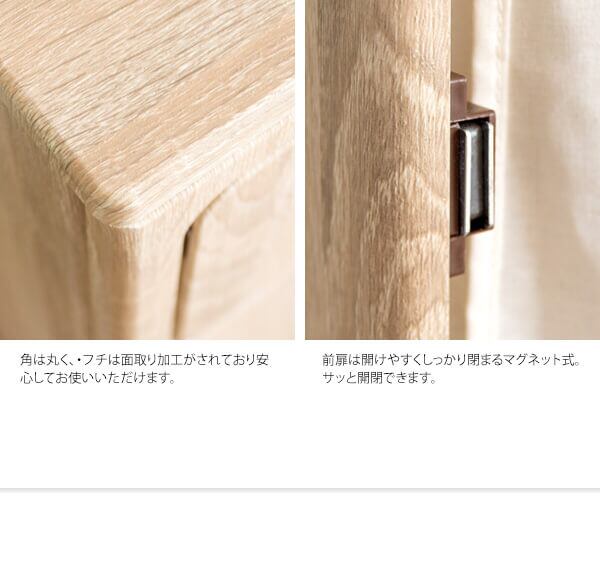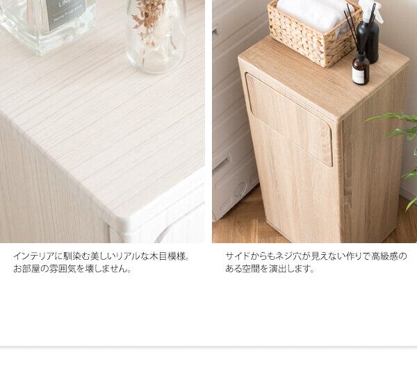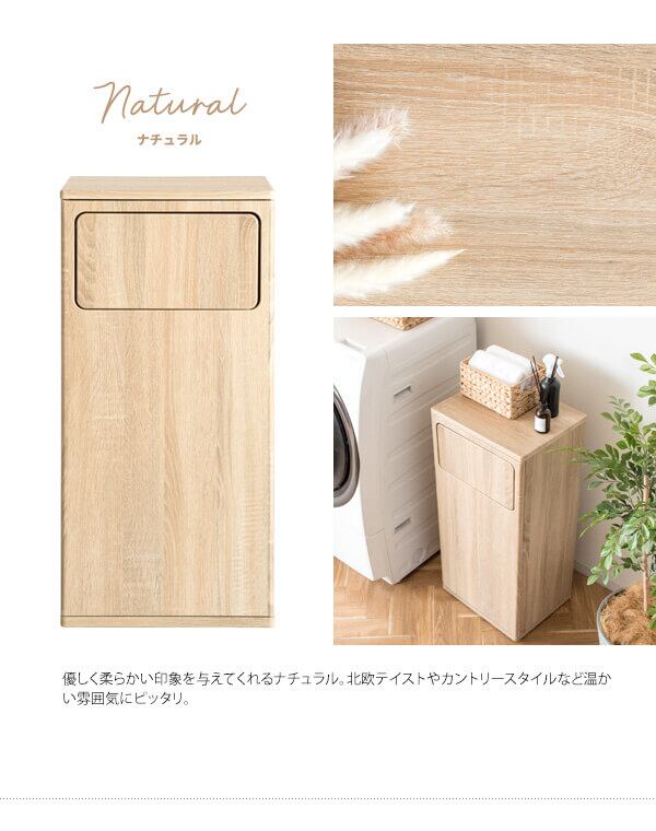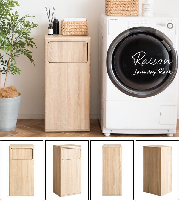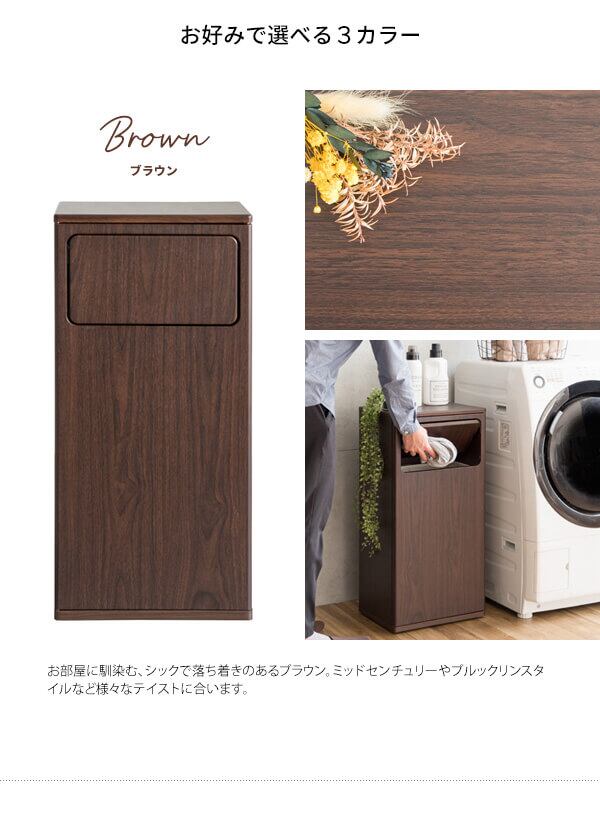 脱いだ服やタオルを隠しながら入れられる扉付きの木目調ランドリーボックスです。