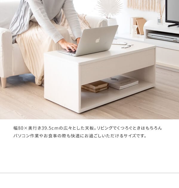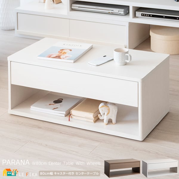 センターテーブル 80cm幅 ホワイト ブラウン 白 茶色 キャスター付きテーブル 引き出し収納付きテーブル オープン収納付き リビングテーブル コーヒーテーブル 幅80cm 奥行39.5cm 高さ35cm おすすめ おしゃれ 北欧 モダン スタイリッシュ スクエアテーブル 作業台 作業机