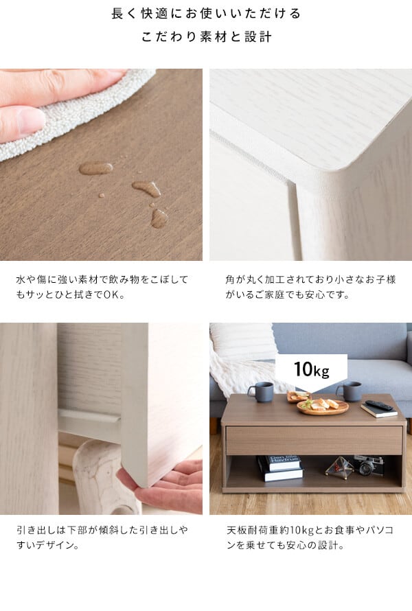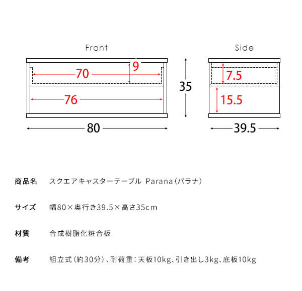 ■耐荷重(約):天板10kg、引き出し3kg、底板10kg