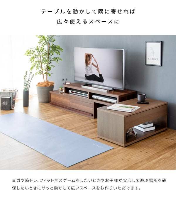 隠しキャスター付きなので、お部屋で広いスペースを作りたいときにサッと動かすことができるリビングテーブルです。