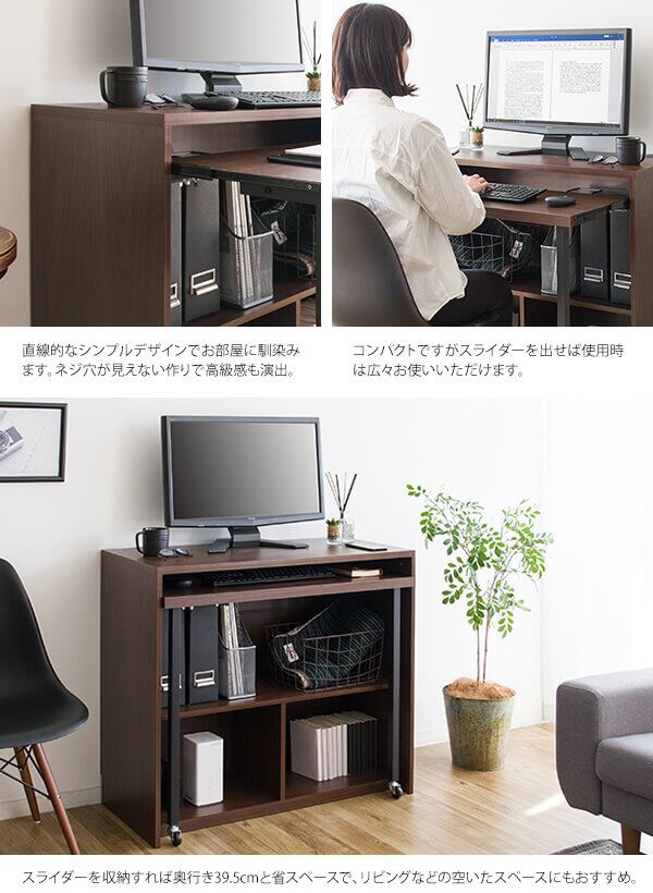 ワークデスク 90cm幅 ブラウン 茶色 スライダーデスク 収納棚付デスク オフィスデスク パソコンデスク PCデスク コンセント付き 幅90cm 奥行39.5cm 高さ82.6cm おすすめ おしゃれ 北欧 モダン スタイリッシュ シンプル 作業台 作業机 作業デスク 机 春 夏 秋 冬 スライダー机