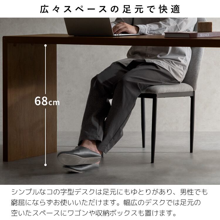 足元にもゆとりがあり、窮屈にならずにご使用可能なので、足元の空いたスペースにワゴンや収納ボックスを置くこともできます。