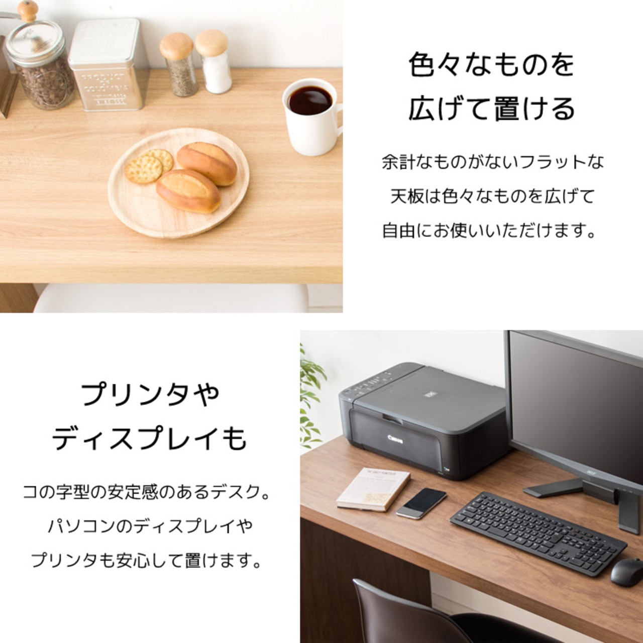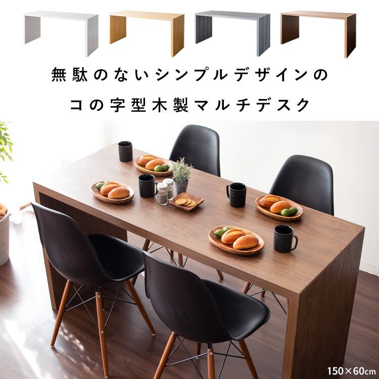 すっきりとした直線のコの字型で人気の150cm幅、奥行60cmタイプの木製デスクです。