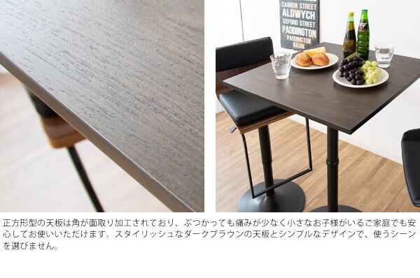 ハイテーブル 60cm幅 ダークブラウン スクエアテーブル 正方形 バーテーブル コンパクト 省スペース 幅60cm 奥行60cm 高さ101cm ダイニングテーブル カフェテーブル おすすめ おしゃれ 北欧 モダン スタイリッシュ 春 夏 秋 冬 机 正方形テーブル スタンディングテーブル
