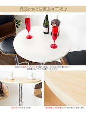 直径60cmの大きめの天板と高さ90cmのサイズ感で、バーチェアやハイスツールとあわせやすい円型のハイテーブルです。