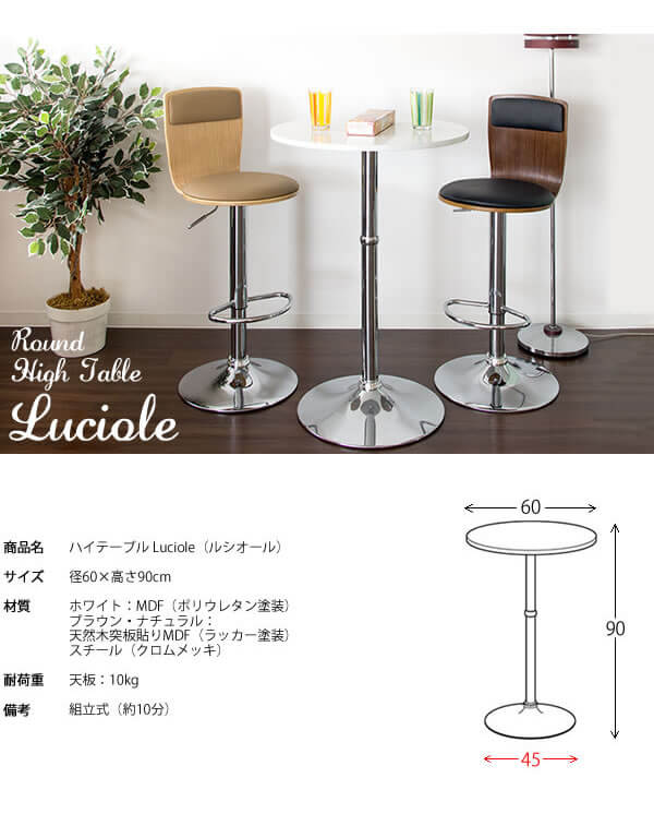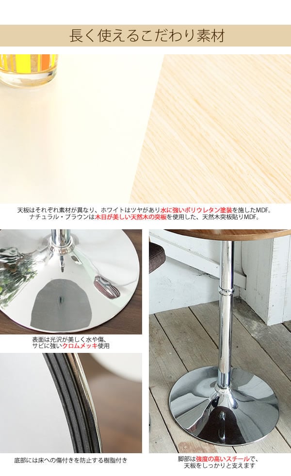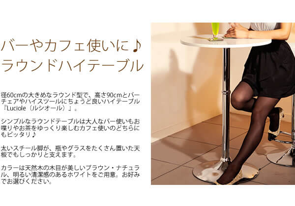 ハイテーブル 60cm幅 ブラウン ナチュラル ホワイト 茶色 白 ラウンドテーブル 円形テーブル 円型 丸型テーブル 丸形 バーテーブル 直径60cm 高さ90cm カフェテーブル ダイニングテーブル おすすめ おしゃれ 北欧 モダン スタイリッシュ コンパクト 省スペース 机 テーブル