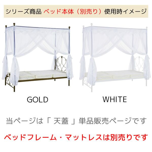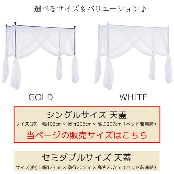 シングルサイズ用天蓋 1台 単品 103cm幅 ホワイト ゴールド 白 ベッド用天蓋 シングルサイズ天蓋 天蓋単品 設置時サイズ幅103cm 奥行206cm 高さ207cm おすすめ おしゃれ 北欧 モダン スタイリッシュ アンティーク調 姫系 シングルベッド用天蓋 春 夏 秋 冬 天蓋