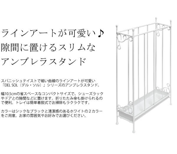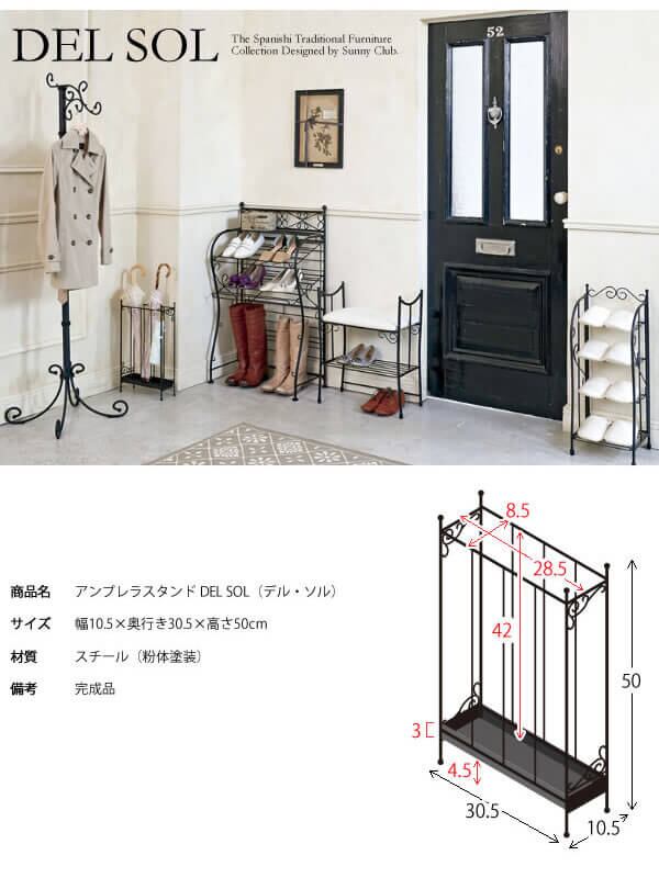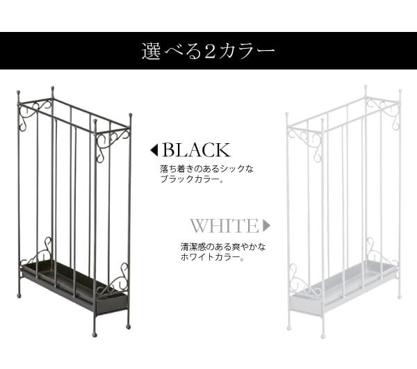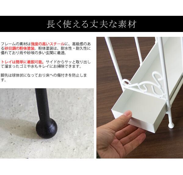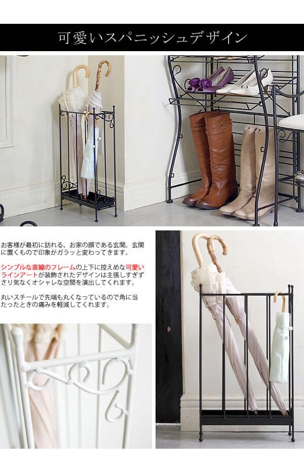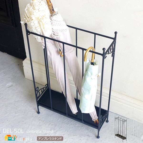 トレイは簡単着脱式でお掃除も簡単なスパニッシュテイストで細い曲線のラインアートが可愛いアンブレラスタンドです。