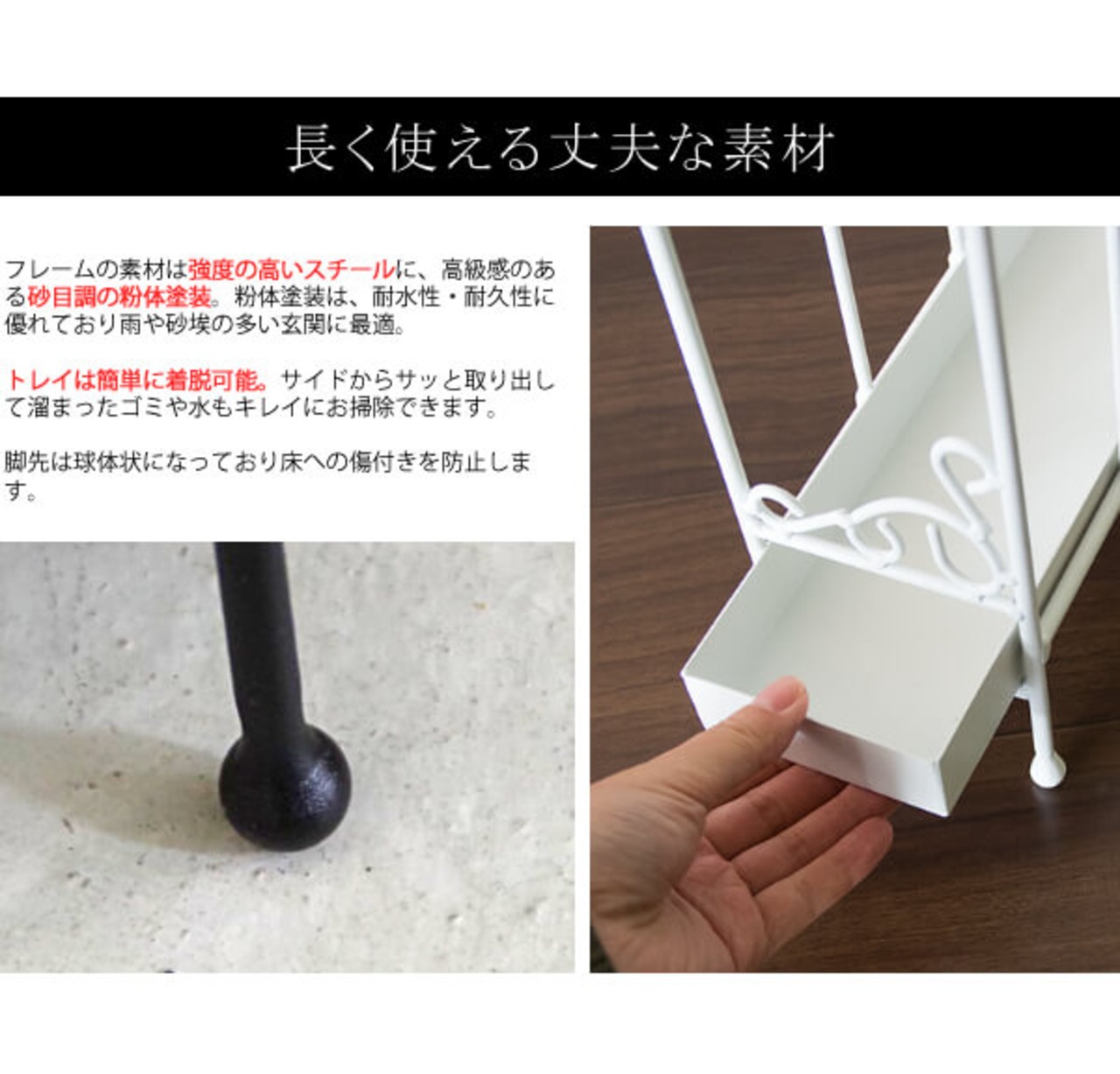 アンブレラスタンド 傘立て 玄関収納 傘収納 アンブレラ収納ラック おすすめ おしゃれ 北欧 ブラック ホワイト 黒 白 玄関ラック 省スペース コンパクト スリム 隙間収納 折り畳み傘収納 折りたたみ傘スタンド トレイ着脱可能 傘ホルダー 傘スタンド 雨具収納 雨傘収納 日傘収納