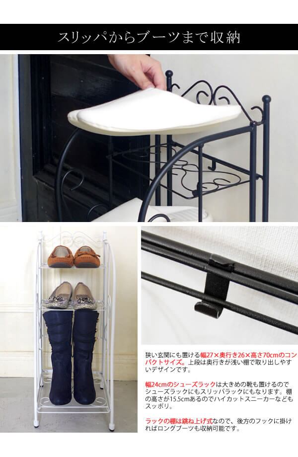 玄関ラック 27cm幅 ホワイト ブラック 白 黒 シューズラック スリッパラック 玄関収納ラック 玄関収納棚 幅27cm 奥行26cm 高さ70cm おすすめ おしゃれ 北欧 モダン スタイリッシュ スチールフレーム ブーツ収納 コンパクト 省スペース スリム 玄関収納 春 夏 秋 冬 収納