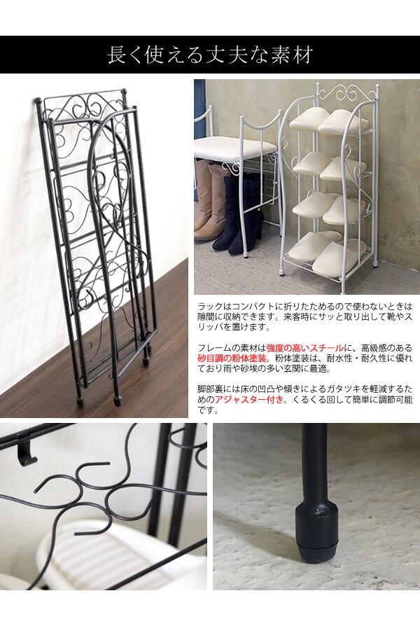 玄関収納ラック シューズラック スリッパラック シューズスタンド スリッパスタンド 玄関ラック 玄関スタンド 収納スタンド 収納ラック おすすめ おしゃれ 北欧 ブラック ホワイト 黒 白 スチールフレーム アイアンフレーム 折り畳み式 ブーツ収納 ブーツラック スニーカーラック スニーカー収納 玄関収納 リビング収納 省スペース コンパクト
