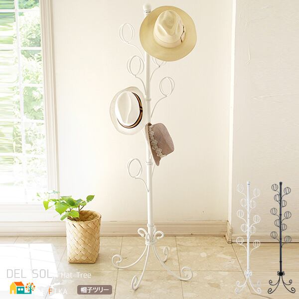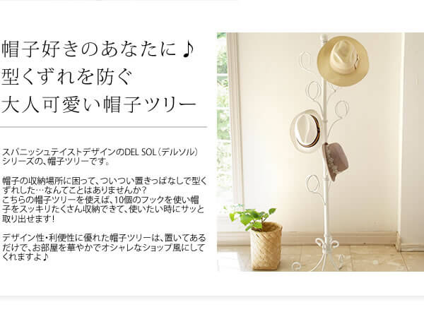 10個のフックを使い、帽子をスッキリたくさん収納できるスパニッシュテイストデザインの帽子ツリーラックです。