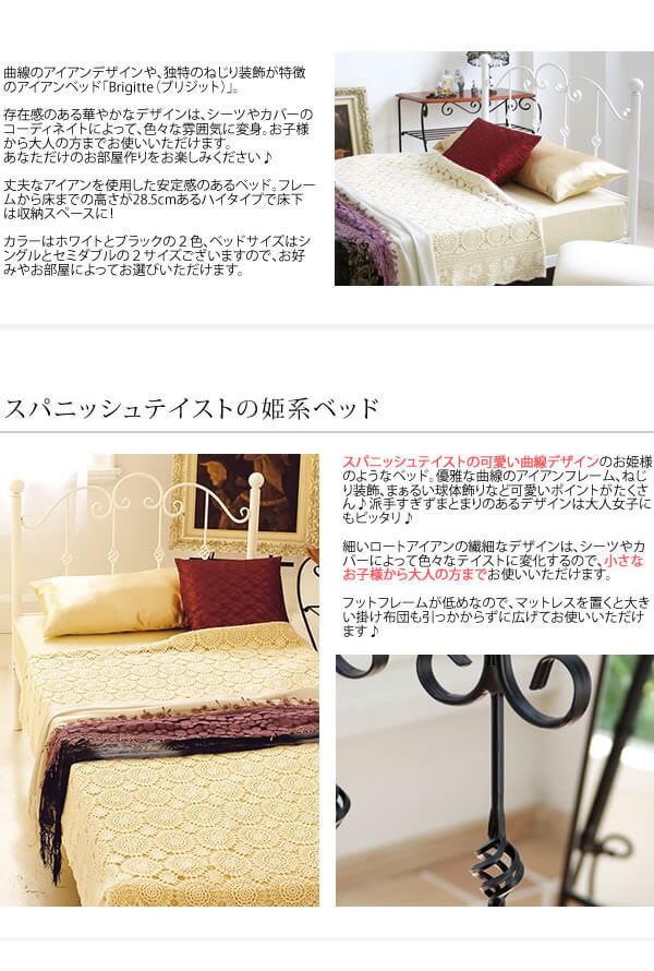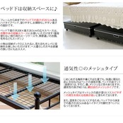 丈夫なアイアンを使用した安定感のあるベッドで、フレームから床までの高さが28.5cmあるハイタイプで床下は収納スペースになります。