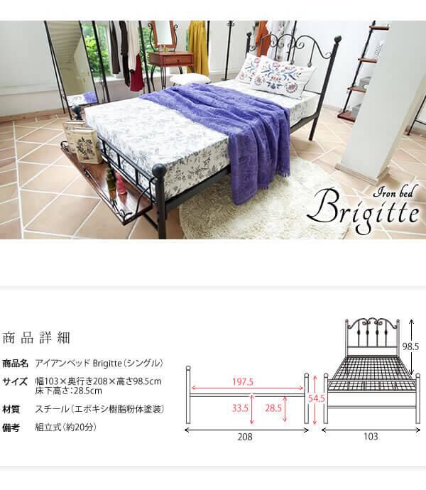 曲線のアイアンデザインや、独特のねじり装飾が特徴のシングルサイズのアイアンベッドフレーム1台単品です。