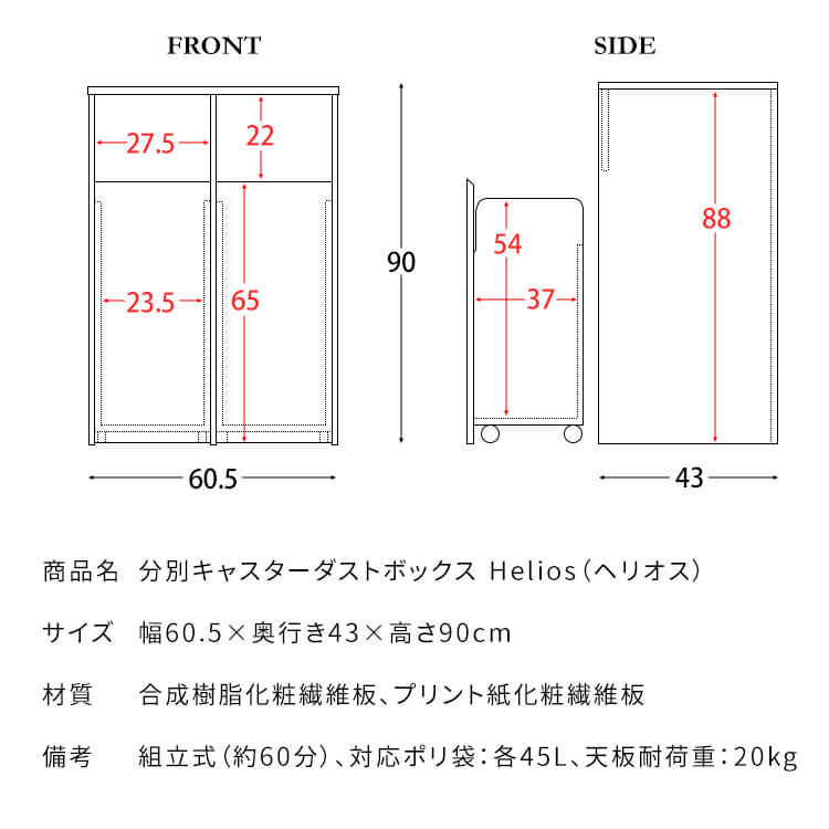 ■商品サイズ(約):幅60.5cm、奥行43cm、高さ90cm