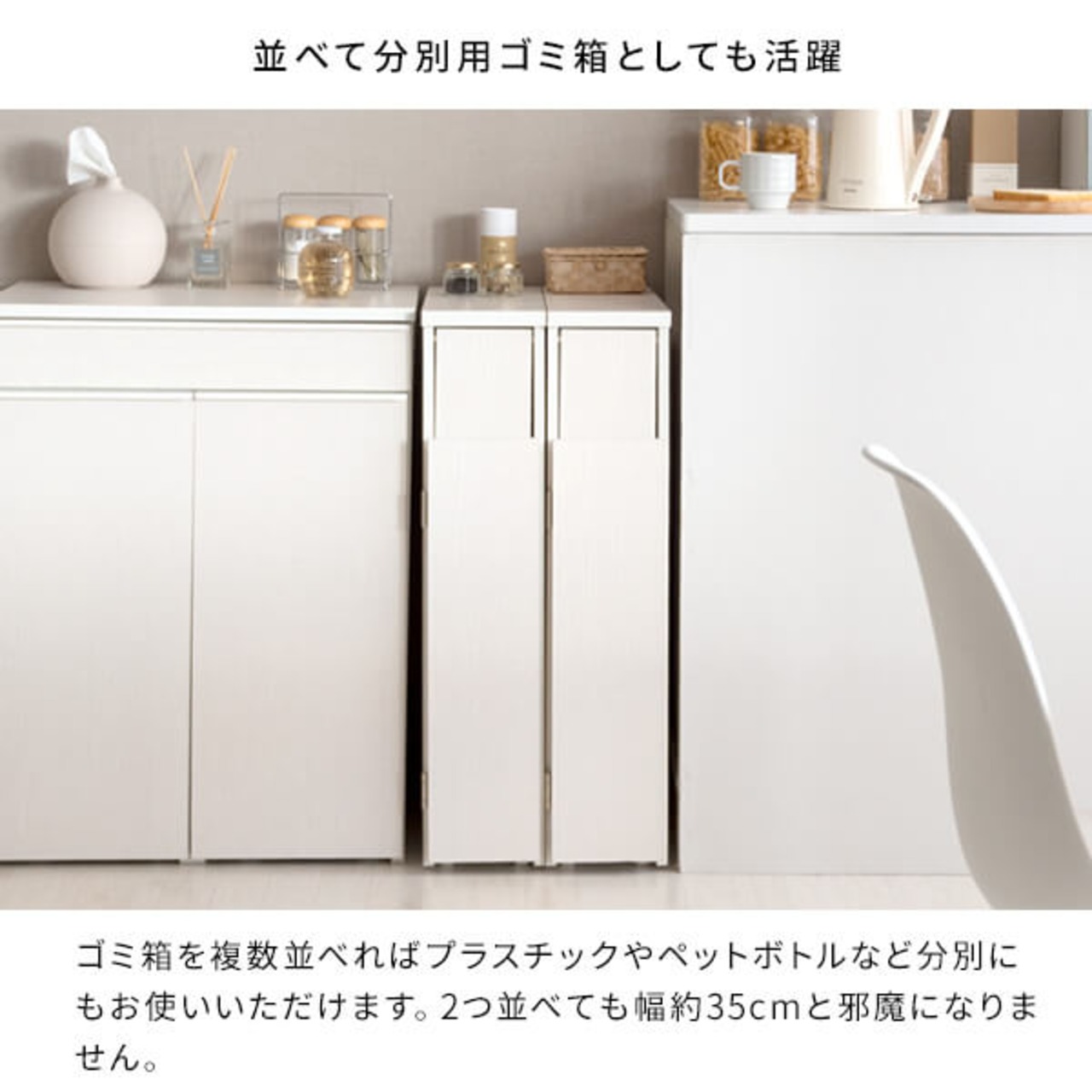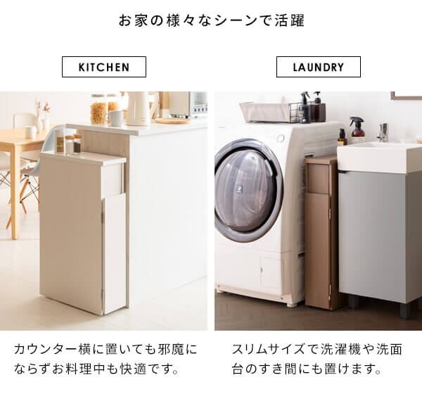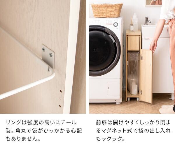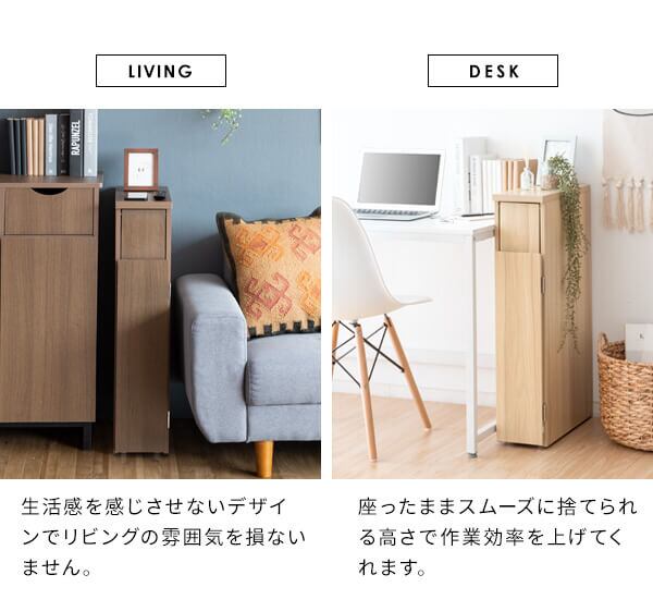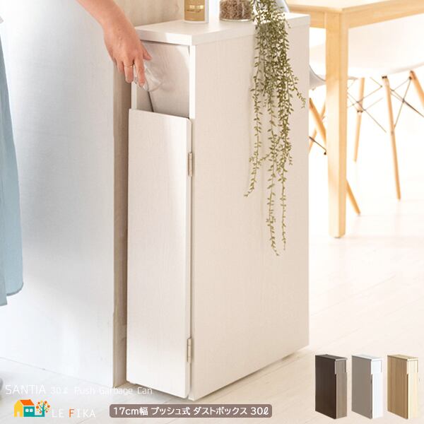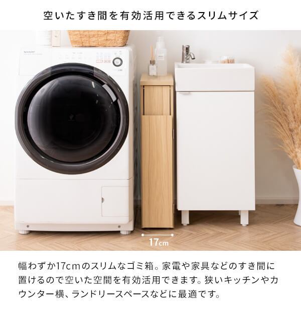 幅17cmでキッチンや洗面所のすき間に設置しやすいプッシュ式のスリムダストボックスです。
